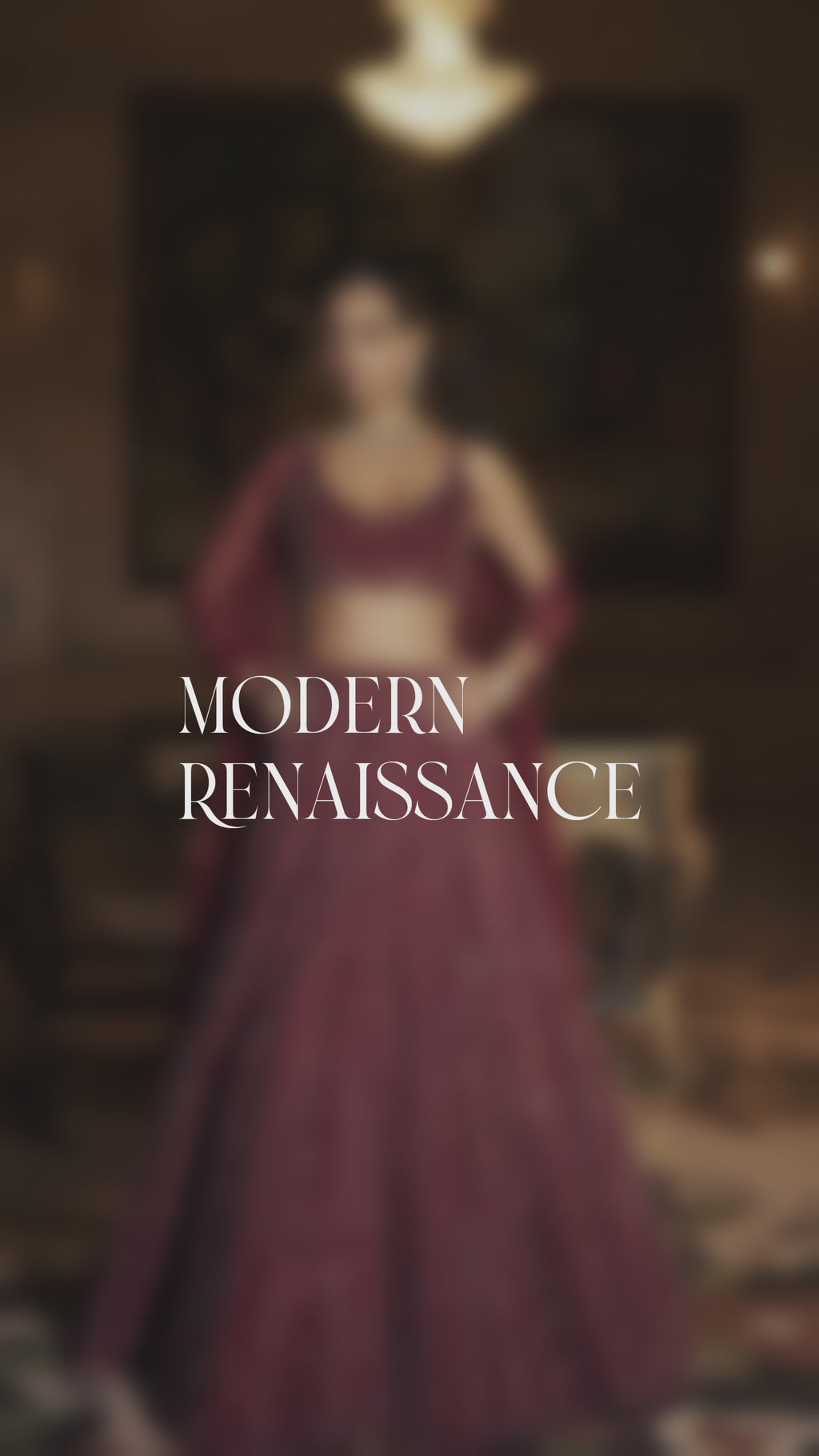 This maroon lehenga set features tonal crystal, sequin and bugle beads embroidery in a linear pattern. The round neck blouse has tassels at the waist and double strap at the back. It is paired with a matching embroidered net dupatta with tassels on all four sides .